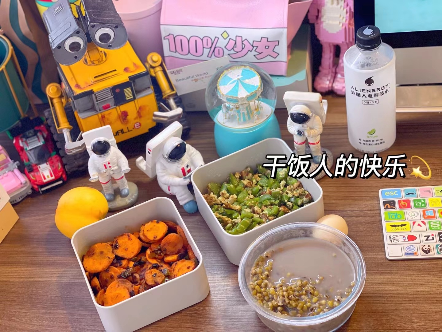 比如这个老干妈炒胡萝卜,辣椒炒鸡蛋,冰冰+0卡糖的绿豆粥!都是我爱吃瘦肉丸的味道 ♀