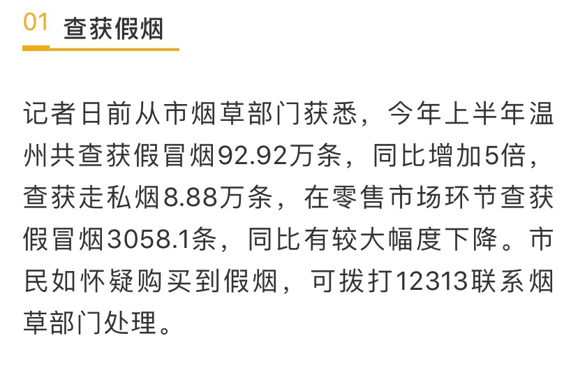 温州上半年居然查获假冒烟92.92万条!!!
