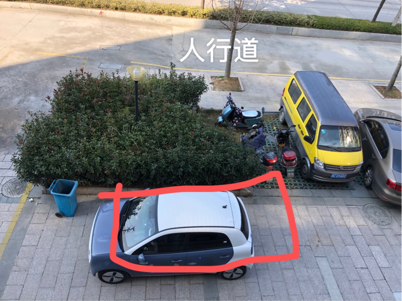 你对人行道是不是有误解?你那人行道是非机动车道,还有小区内道,你那是小区里面吗?小区内道城管还能进得去?