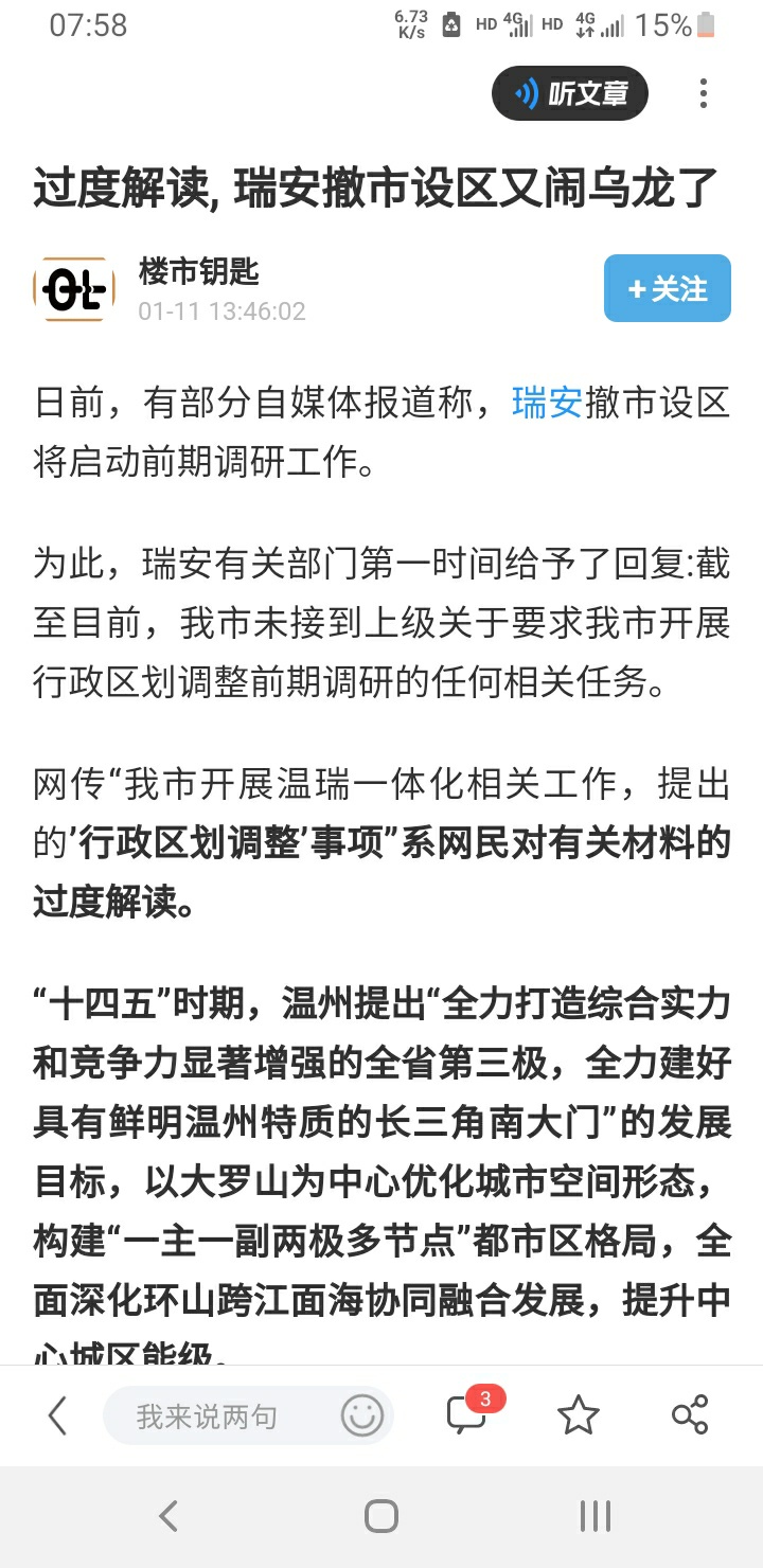 我估计省里的考量是,温州市区鹿城,瓯海,龙湾,洞头自身还没发展饱和。就急着设区,正常是市区发展到极 ...