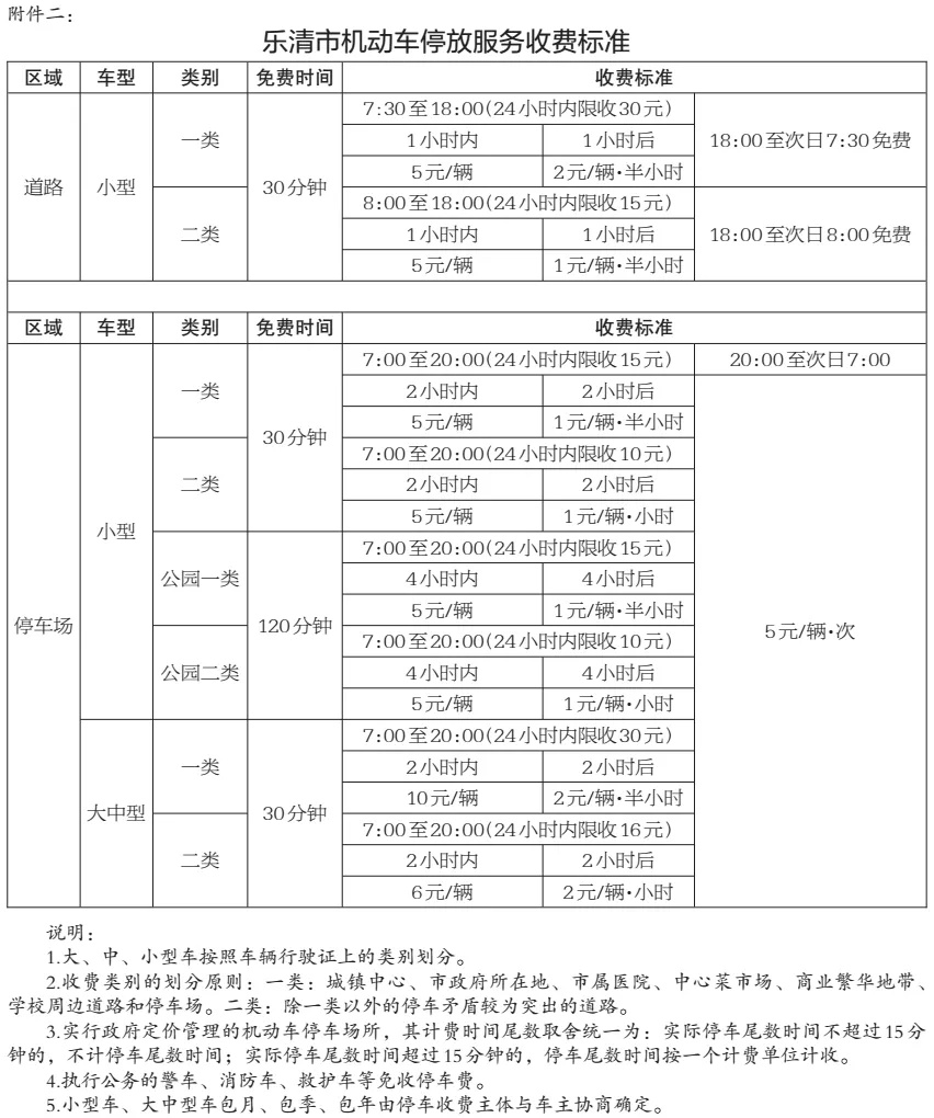 为充分体现城市停车管理的科学性、合理性和精细化水平,满足市民工作、生产、生活实际需求,在《乐清市人民政府关于规范机动车停放服务收费管理的通知》(乐政发〔2014〕59号)文件规定的基础上,适当延长免费停车时间(详见附件二)。