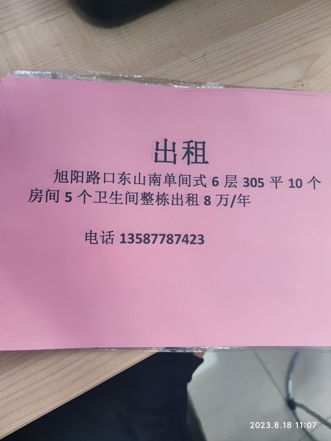 旭阳路口东山南单间式6层建筑面积305平10个房间5个卫生间整栋出租8万/年13587787423