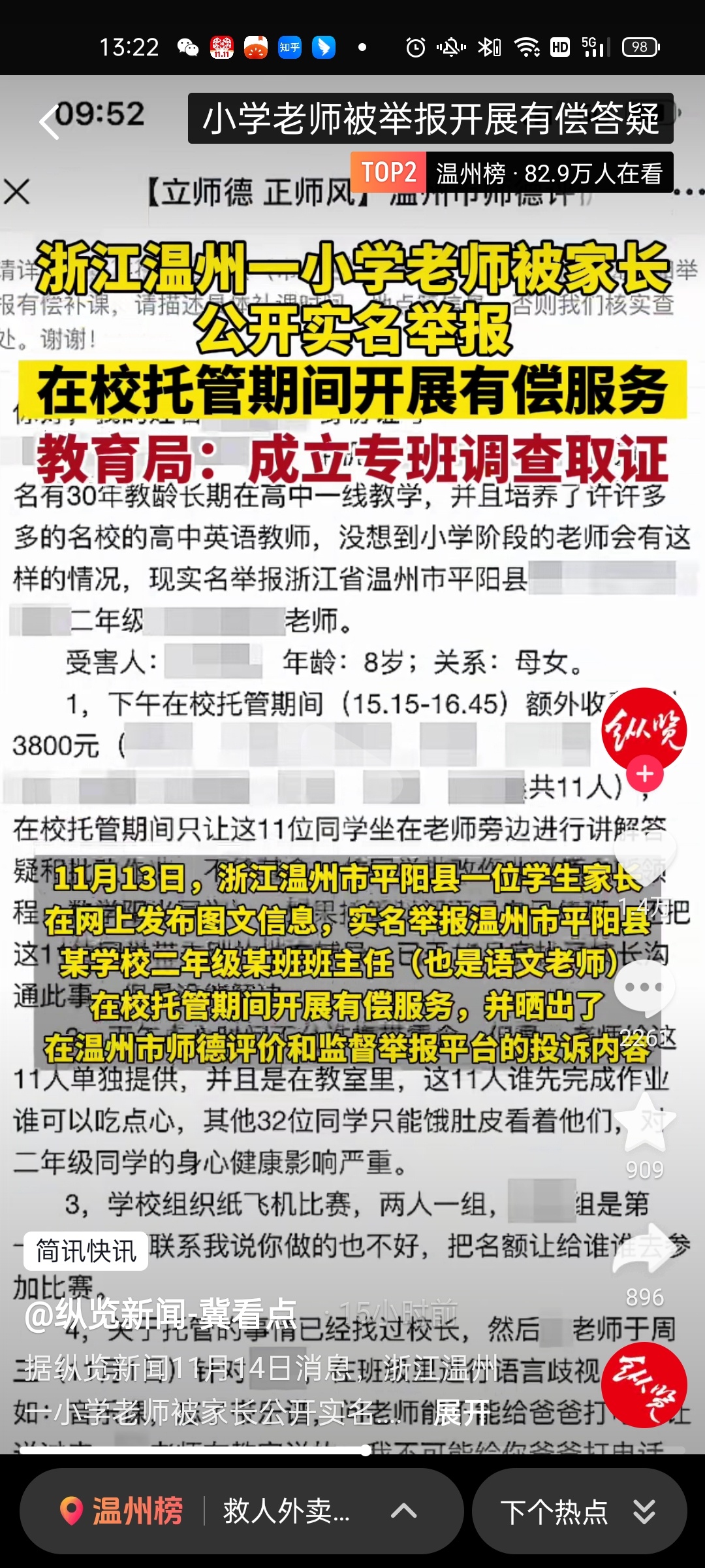 平阳鳌江老师搭车收费被举报了