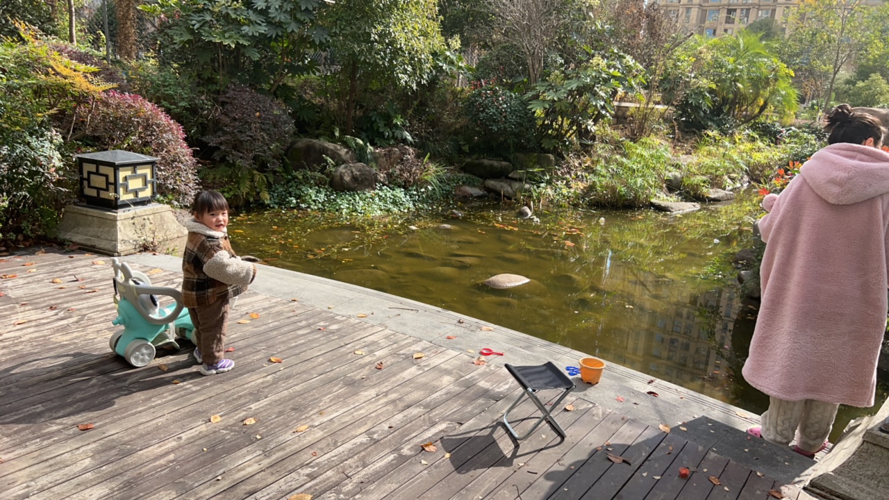 小区里竟然小盆友在钓鱼