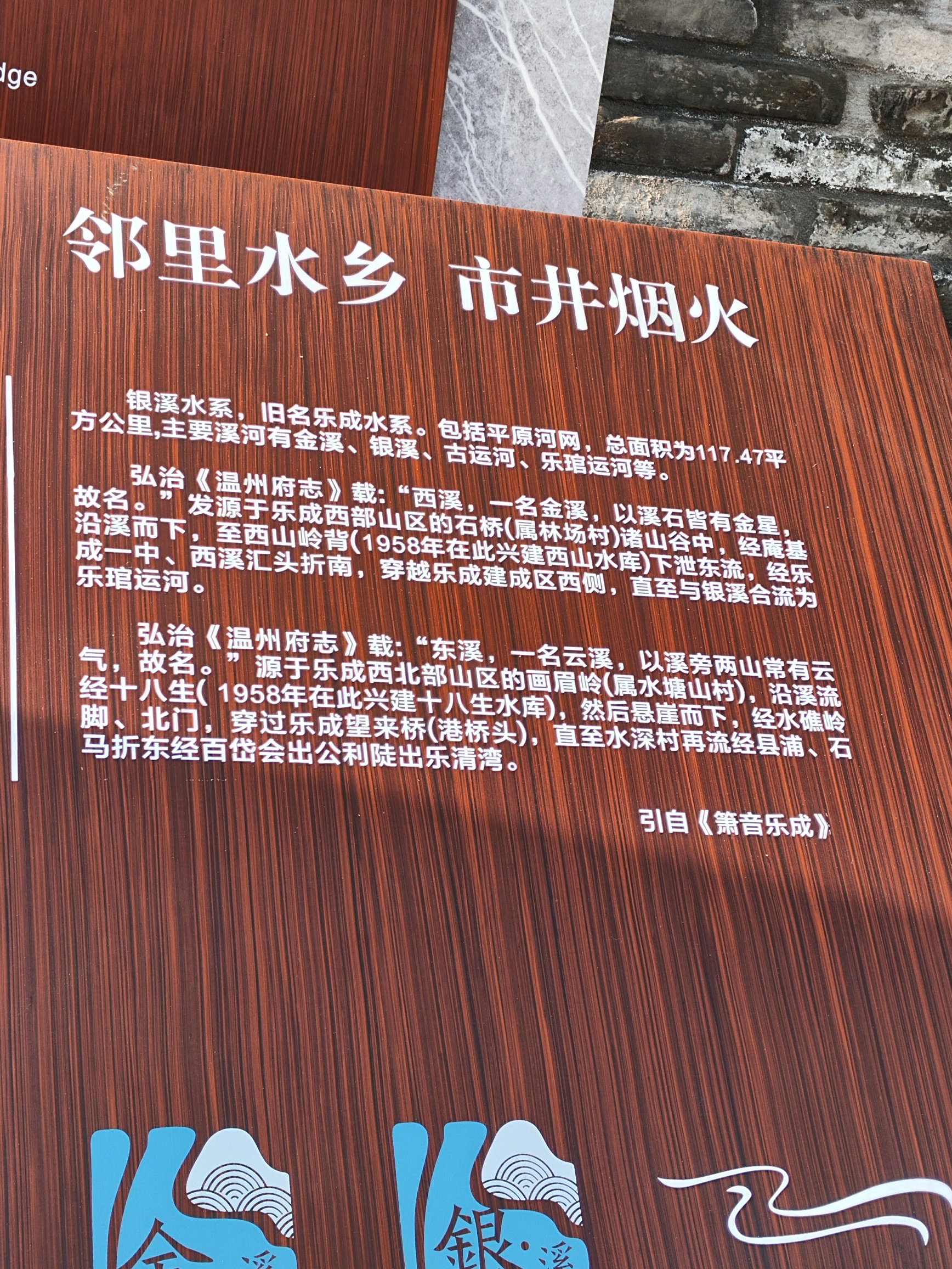 在乐成金溪“鸭儿桥”(井树园门口对面)边上看见一新立的金、银溪简解中的一个字~是电脑打不出来还是审核不严谨?