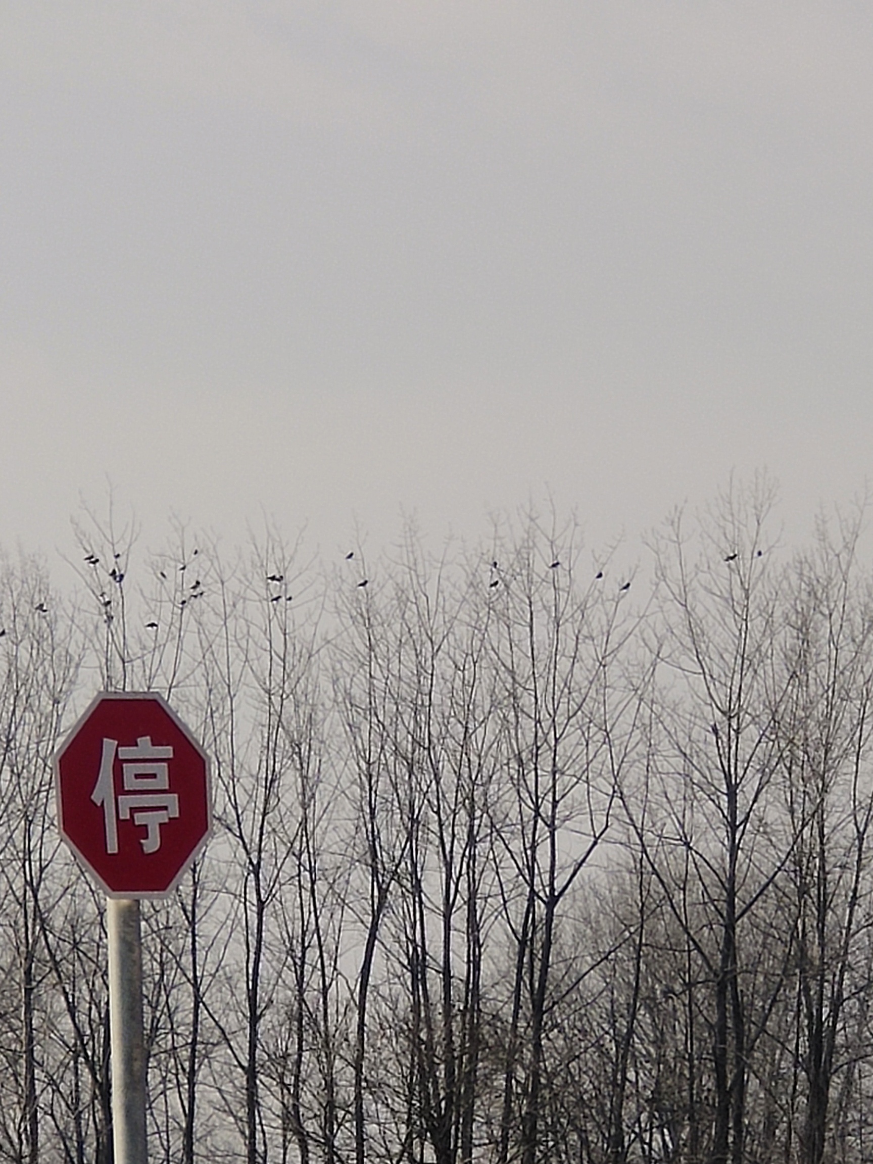 枯枝栖寒鸟,