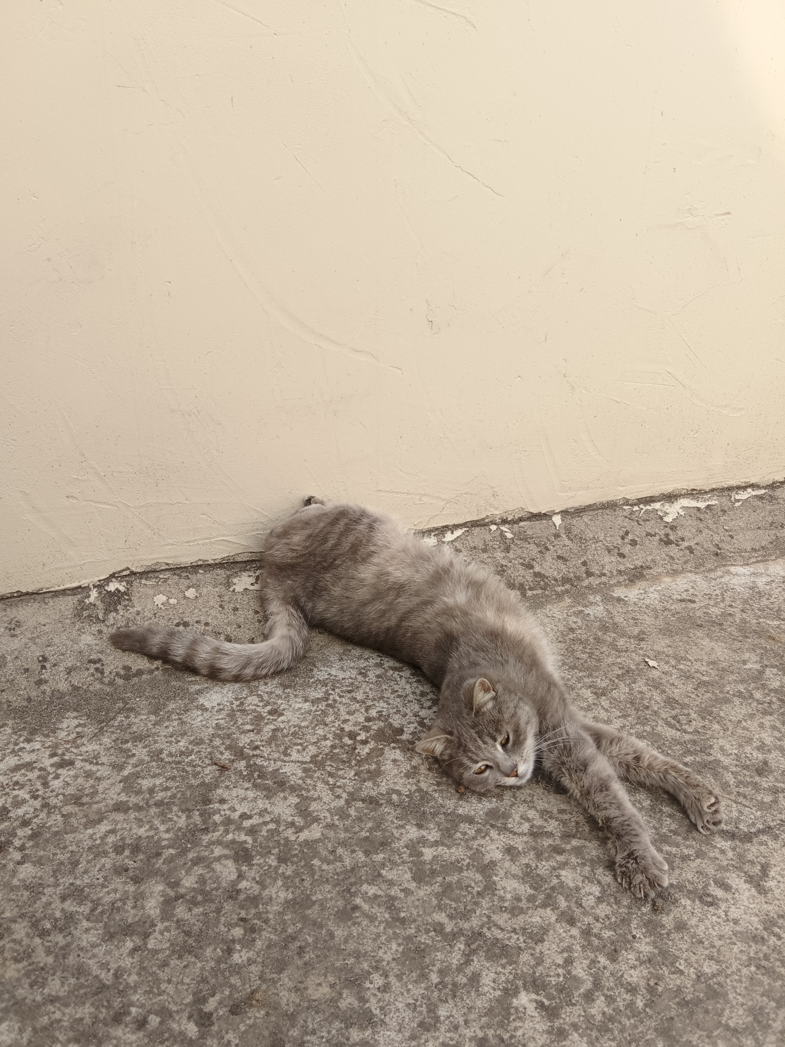 惊现一只伸懒腰的猫
