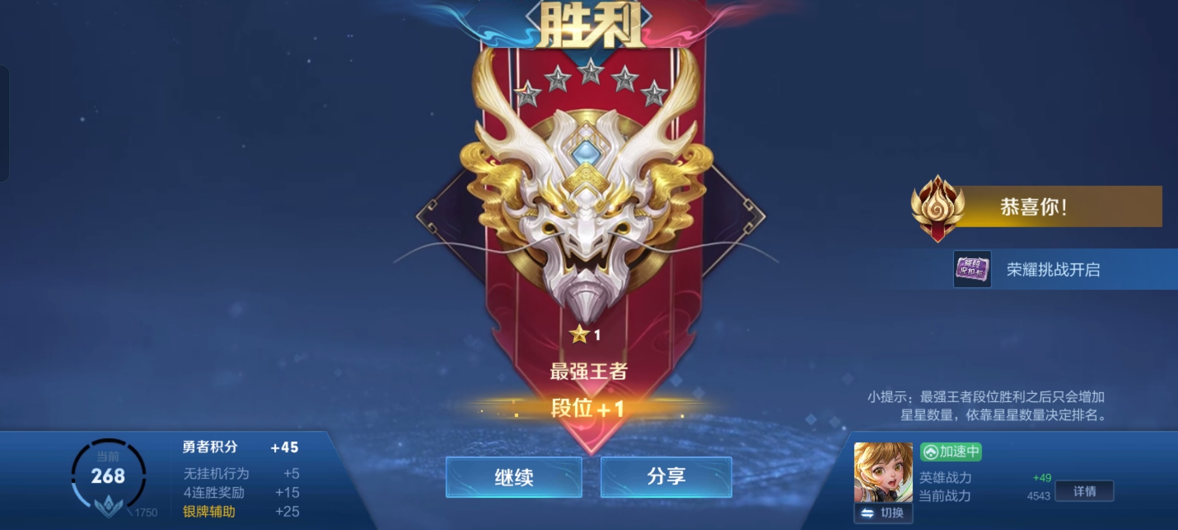 终于上王者了哈哈哈