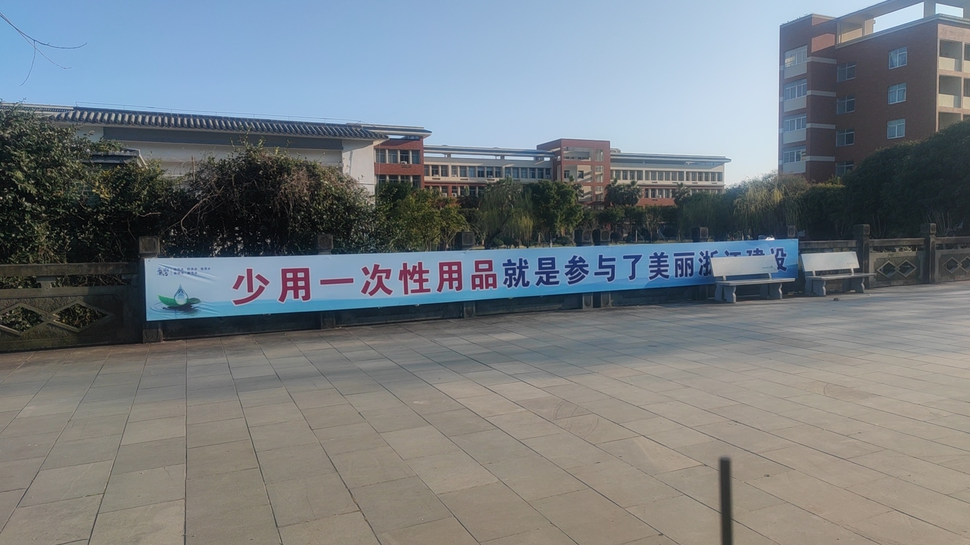 今天在乐清中学这里看到了一个标语!居然想歪了!第一时间居然没反应过来你们也来看看这个广告宣传语合适不!我觉得不好: 少用一次 性用品就是参与了美丽浙江建设