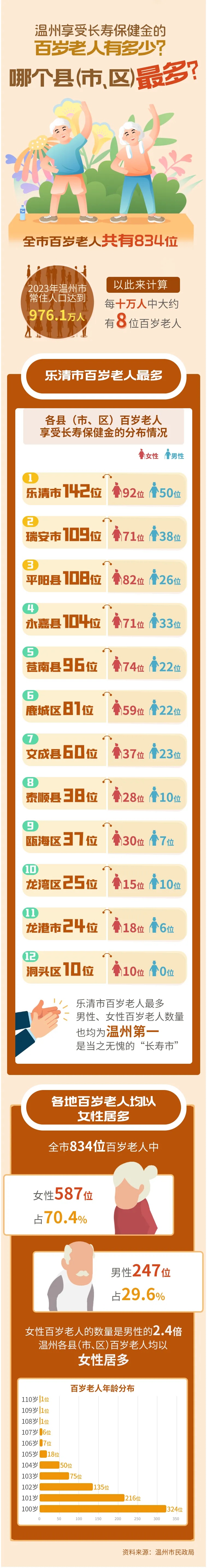 温州百岁老人有多少?哪个县(市、区)最多?