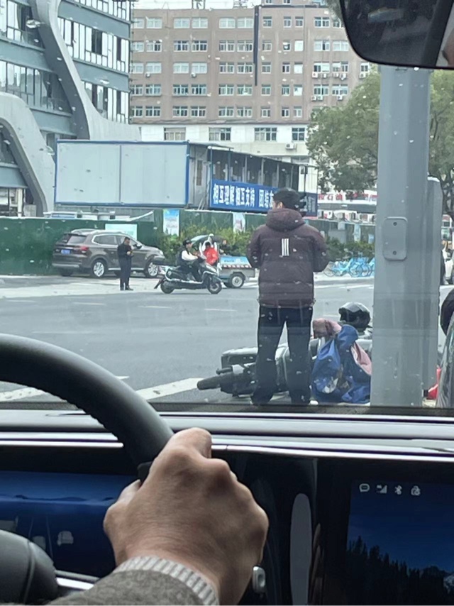 电瓶车撞起来了,交警也来了