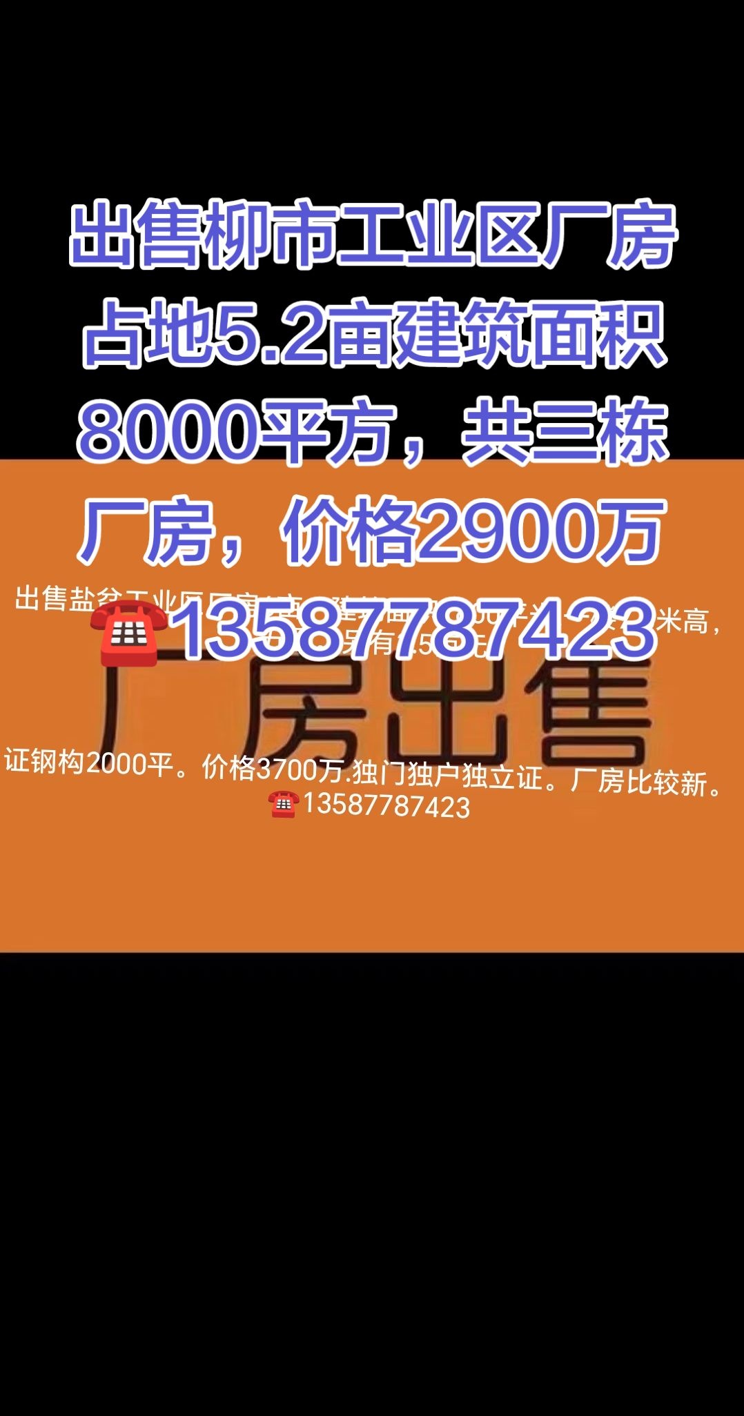 出售柳市工业区厂房占地5.2亩建筑面积8000平方,共三栋厂房,价格2900万