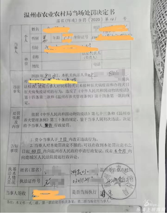 日前,温州市农业综合行政执法队依据《温州市养犬管理条例》对辖区内一养犬人饲养未免疫犬只行为作出行政处罚。这是我市《温州市养犬管理条例》实施以来开出的首张罚单。 据鹿城区农业综合行政执法队工作人员 ...