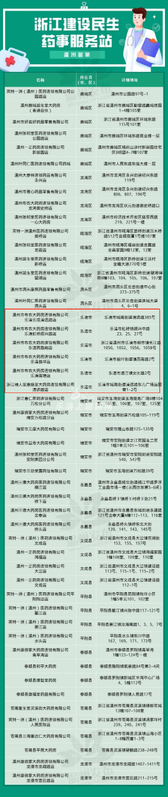本帖最后由 美人如此多娇1 于 2021-11-7 14:20 编辑 药品安全关系人身健康和生命安全。日前,浙江省药品监督管理局公布388个民生药事服务站名单,其中包括乐清6个站点。快看有没有你家门口的~ 来源:温 ...