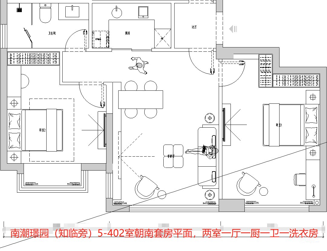 出租南潮璟园朝南套房90平米,二室一厅一厨一卫一阳台,轻奢新装修,详见户型图