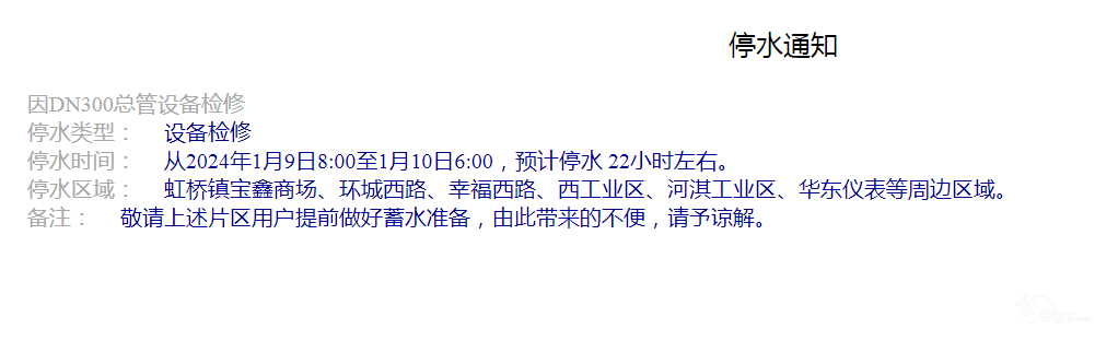 这里要停水了