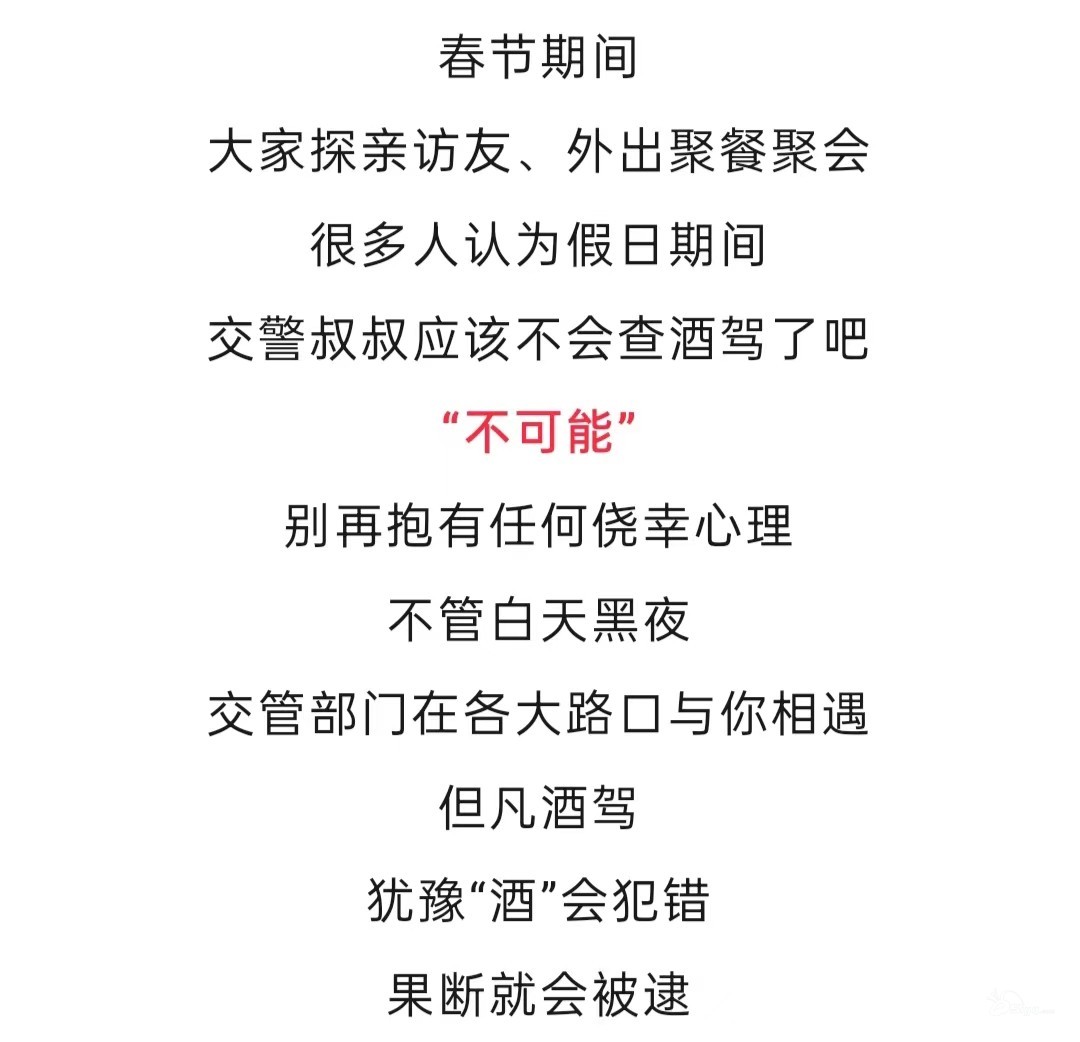 秋名山车神 发表于 2024-02-13 16:40 年,29,30,初一,初二,初三,这几天力度其实不大,我全城跑遍了都没看到有查酒驾