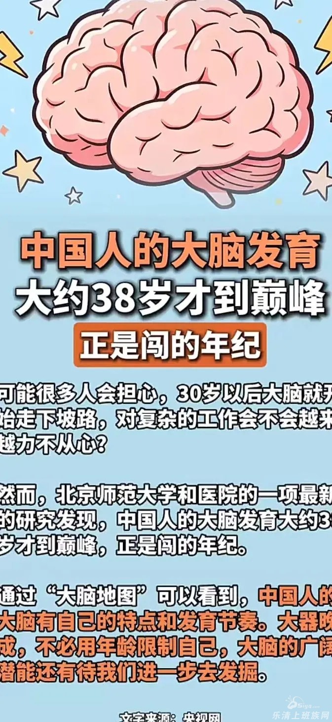 中国人大脑发育约38岁才到巅峰 可能很多人会担心,30岁以后大脑就开始走下坡路,对复杂的工作会不会越来越力不从心?然而,北京师范大学和医院的一项最新的研究发现,中国人的大脑发育大 ...